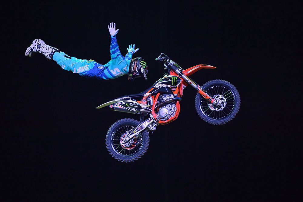 Figure spectaculaire réalisé au Supercross de Paris Bercy.