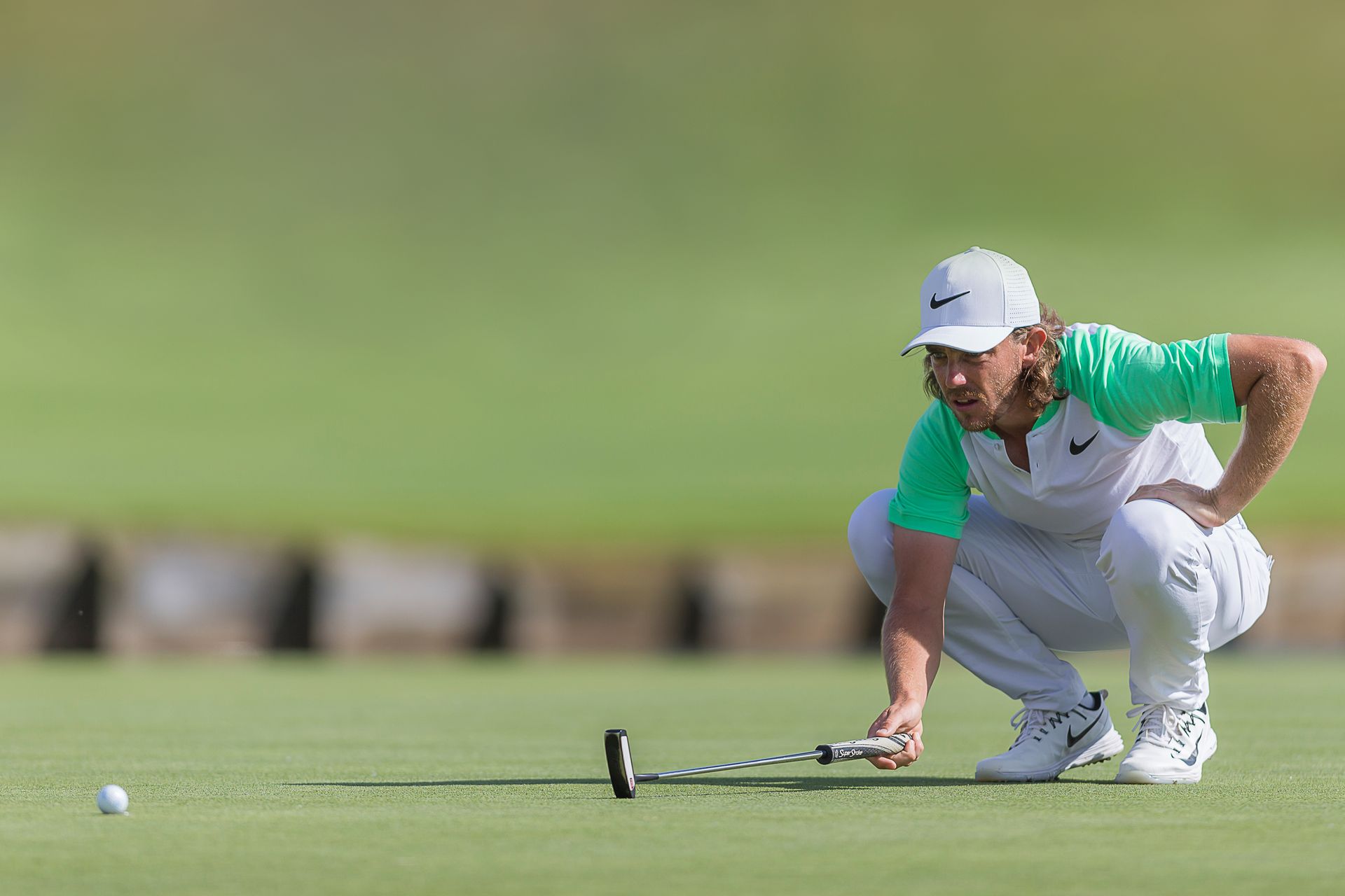 Image épurée d'un golfeur se concentrant sur la trajectoire de sa balle (Open de France)
