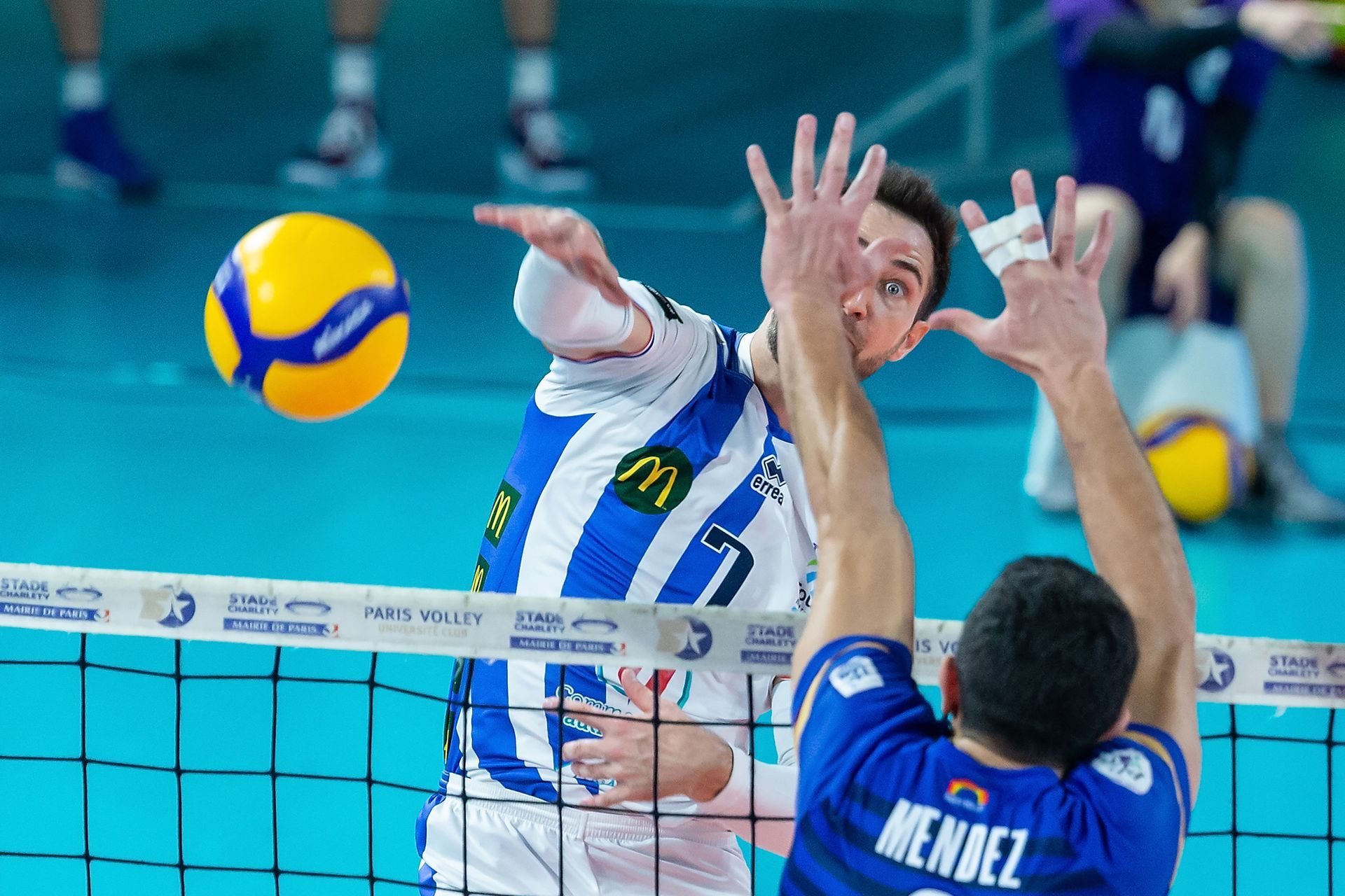 Image capturée sur le vif lors d'une rencontre de Ligue Nationale de Volley à la salle Charpy du club Paris Volley contre Tours.