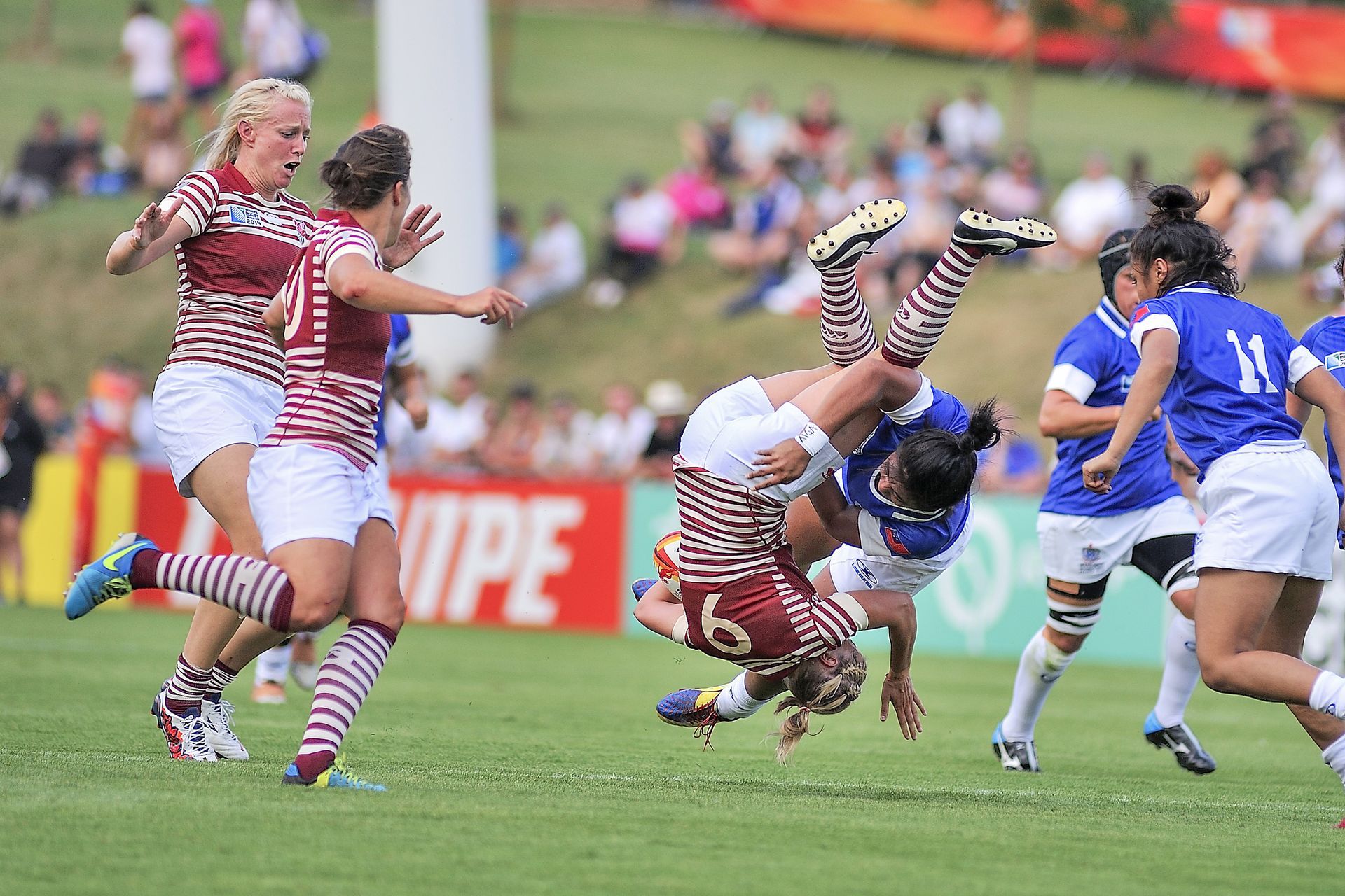 Impressionnant plaquage déployée de tout son corps à la Coupe du Monde de Rugby féminin