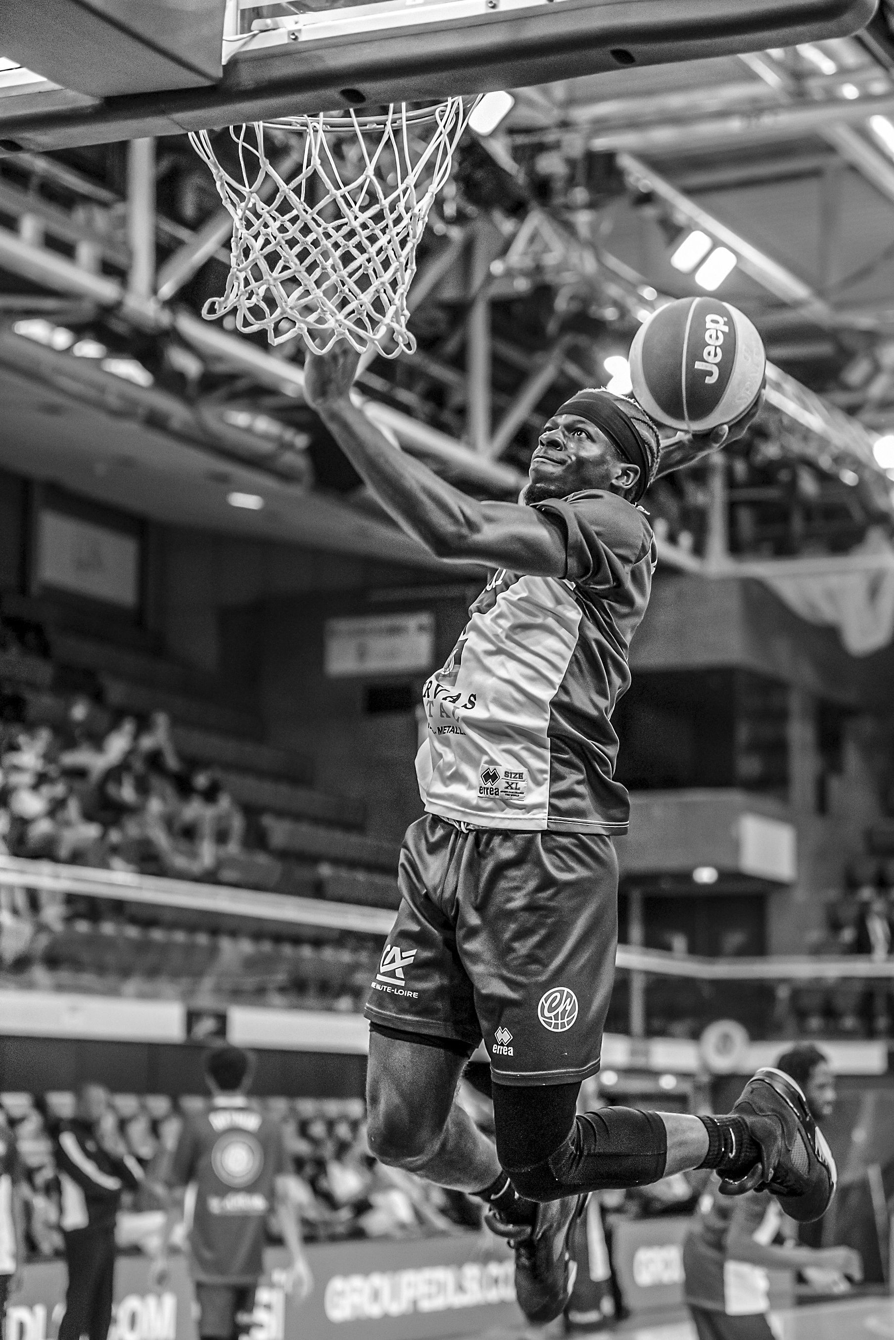 Puissant dunk réalisé à la halle Parmentier lors d'n match de Blois contre Paris Basket.